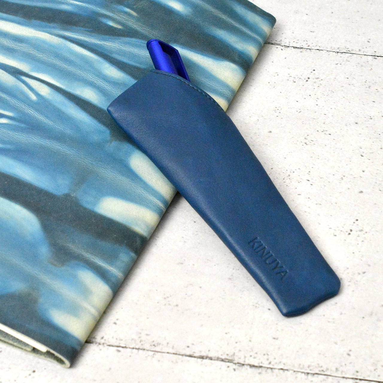 P113 本革 藍染め オリガミペンケース
